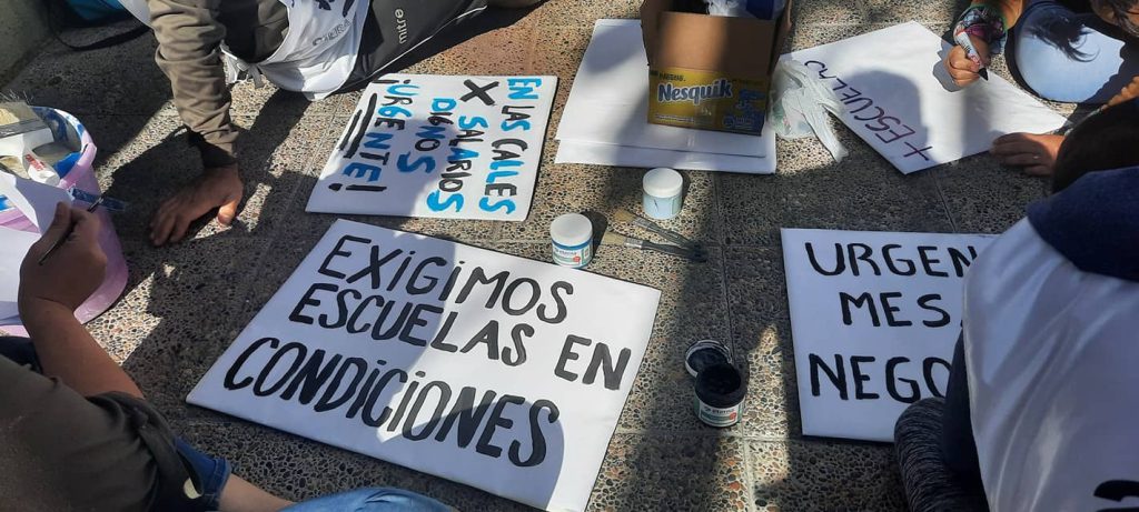 Las escuelas están presentes, armando sus banderas; poniendo nombres concretos a las necesidades educativas, salariales y edilicias.