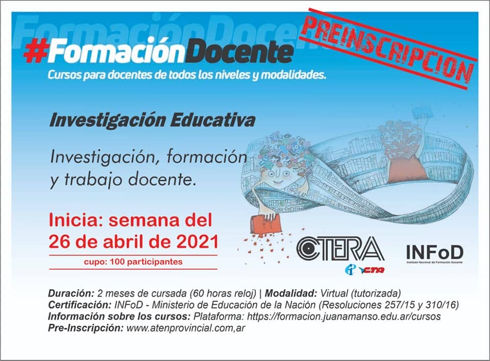 Compañerxs: preinscripción a los siguientes cursos de CTERA e INFoD a partir de mañana viernes desde las 10 hs hasta agotar cupos limitados a través de www.atenprovincial.com.ar (pasos a seguir en uno de los flyers que están aquí abajo)👇