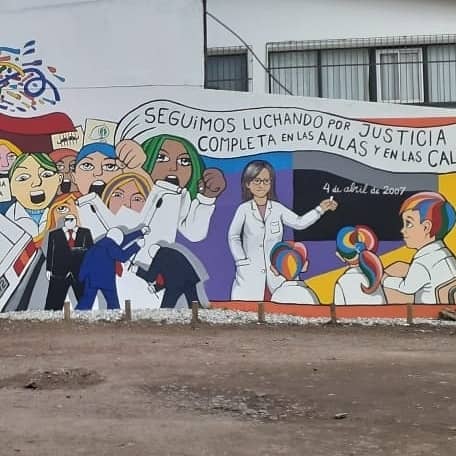 En el día de lxs Maestrxs, la Seccional San Martín de los Andes, convocó a reinaugurar el mural que hace tiempo es un emblema artístico en la región (obra de Chelo Candia y muchxs crxs) desde una pedagogía de la memoria.