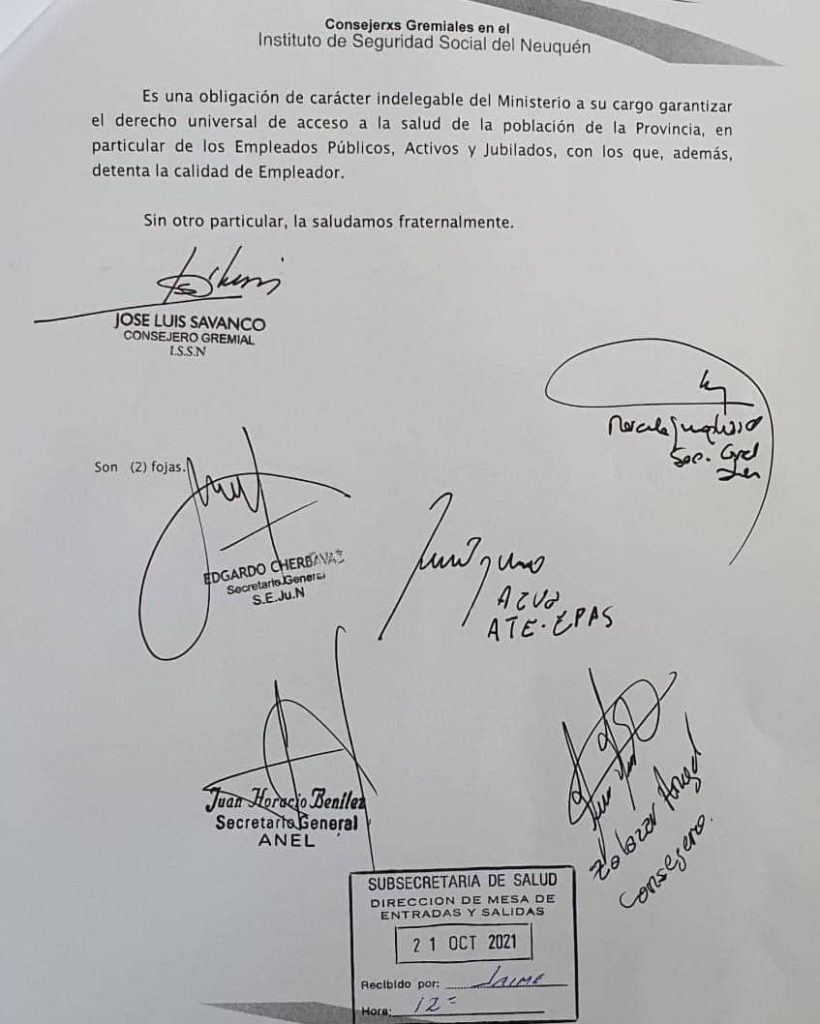 En el día de hoy, los Consejeros Gremiales en el ISSN junto a crxs Sec grales de los sindicatos que patrocinan, se hicieron presentes en el ministerio de salud para solicitar una audiencia con la ministra Peve ante la urgente situación generada por la falta de atención de lxs Traumatólogxs.