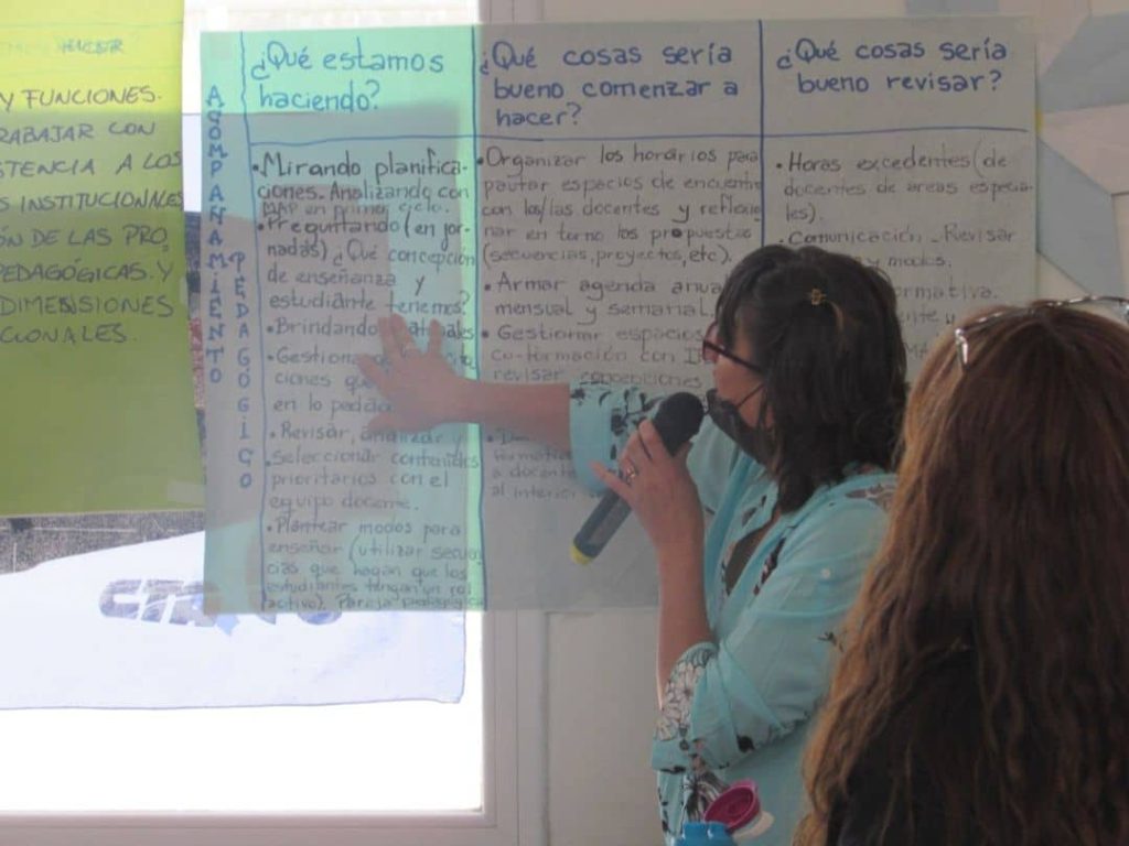 Este espacio de intercambio entre pares que trabajan en cargo directivos de dichas zonas fue coordinado por la Prof. María Elena Jodor, cuyo objetivo principal fue intercambiar experiencias que permitan valorizar las buenas prácticas de gobierno escolar.