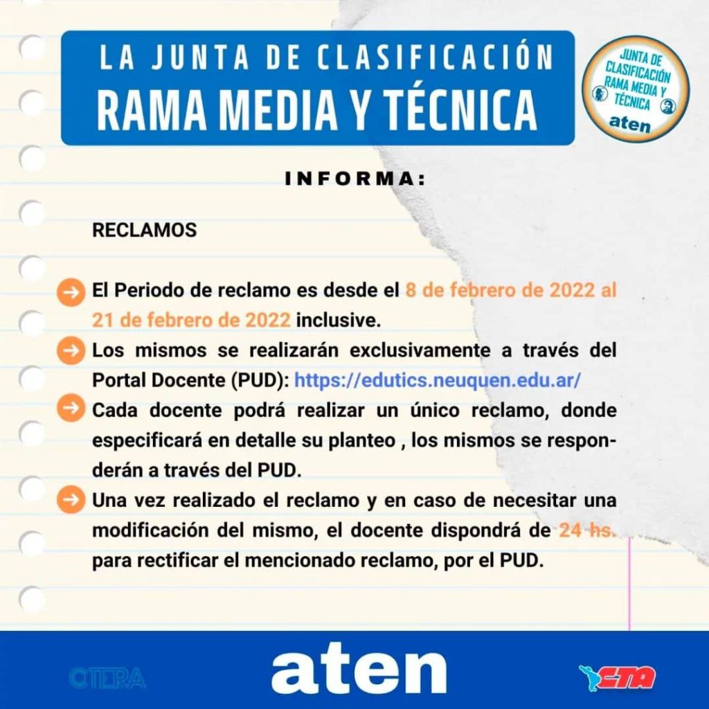 📧 Los reclamos se realizan exclusivamente a través del 💻Portal Único Docente (PUD): https://edutics.neuquen.edu.ar/