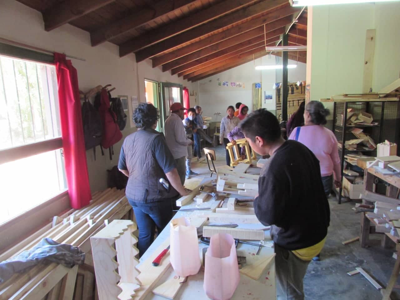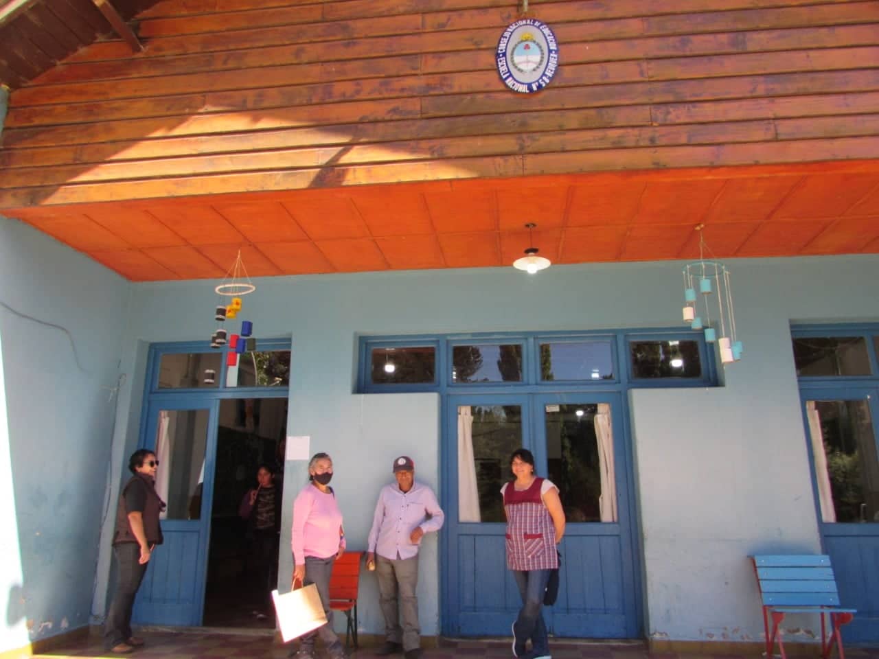 Finalizando el recorrido compartimos unas horas con lxs compañerxs de la Escuela N°58 Juan Benigar, de Ruca Choroy. Recorrimos el interior de la misma, conversamos con lxs docentes de nivel primario e inicial, auxiliares de servicio y el docente del Taller de Caña, quienes nos contaron sobre las experiencias pedagógicas que llevan adelante.