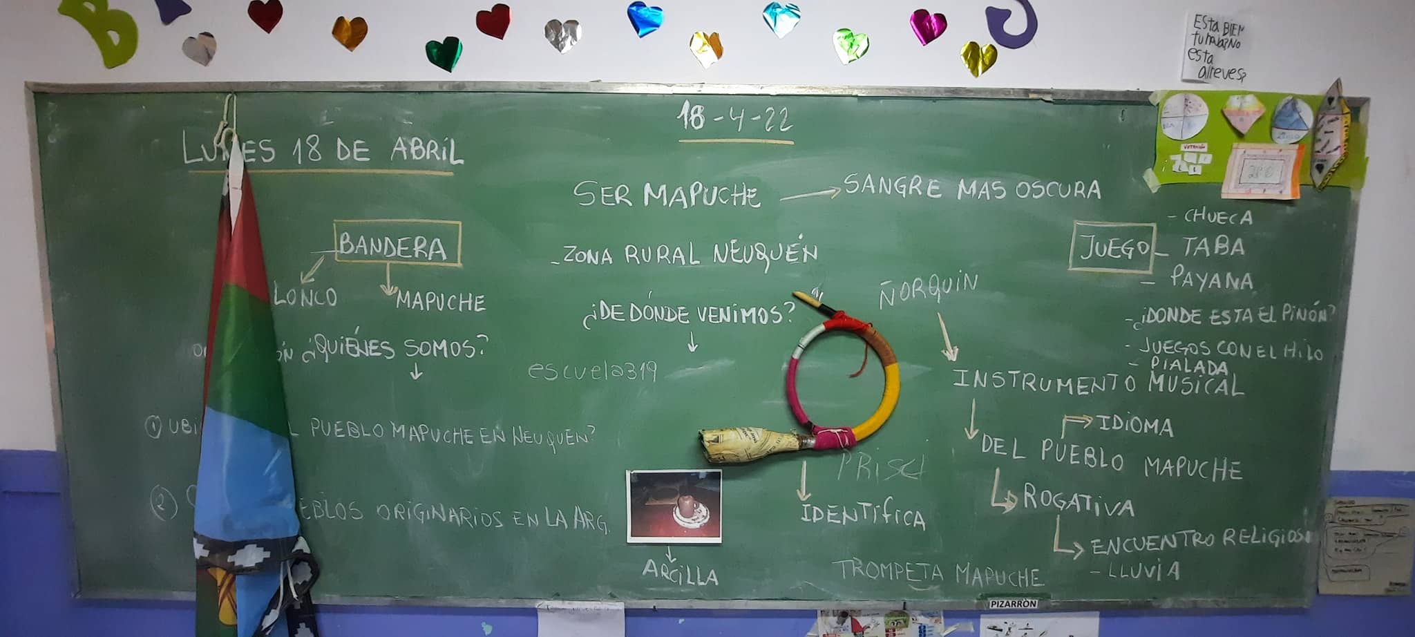 El lunes 18 compartimos con docentes y estudiantes del Cpem 57 de SMA y una rica experiencia de trabajo en la radio de la escuela. Luego visitamos la comunidad de Payla Menuko donde se encuentra la Esc 161 que en estos momentos no puede ser habitada por problemas de gas y lxs estudiantes están reubicadxs en otras instalaciones. Allí conversamos y registramos el trabajo pedagógico de las compañeras, dónde destacamos la presencia de Clara, kimeltufe (maestra de lengua y cultura mapuce) de la escuela.