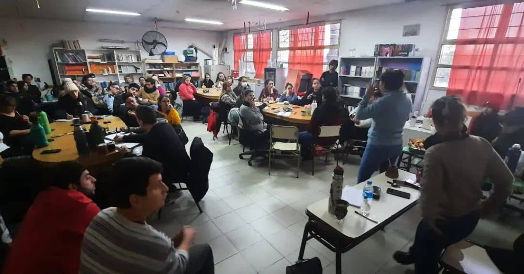 El día de 31 mayo, la secretaria de nivel medio y superior Cecilia González, la secretaria de nivel inicial María Celia Juan y el secretario de prensa Lucas Zori junto a la comisión directiva de la seccional Añelo-San Roque-Chihuidos nos encontramos con compañerxs del CPEM 39 para trabajar sobre la resolución 568 y todas las implicancias político, institucionales y pedagógicas que hacen al proceso de REUBICACIÓN e IMPLEMENTACIÓN del diseño curricular de las escuelas secundarias.