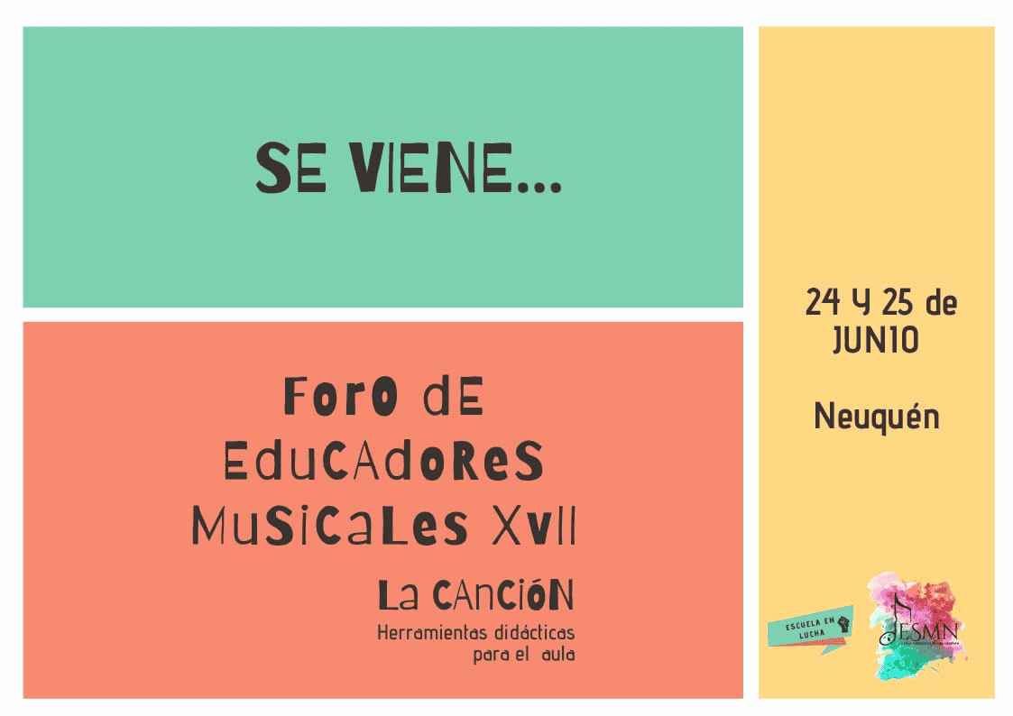 Desde la ESCUELA DE MÚSICA DE NEUQUEN nos invitan a participar del XVII FORO DE EDUCADORES MUSICALES 2022