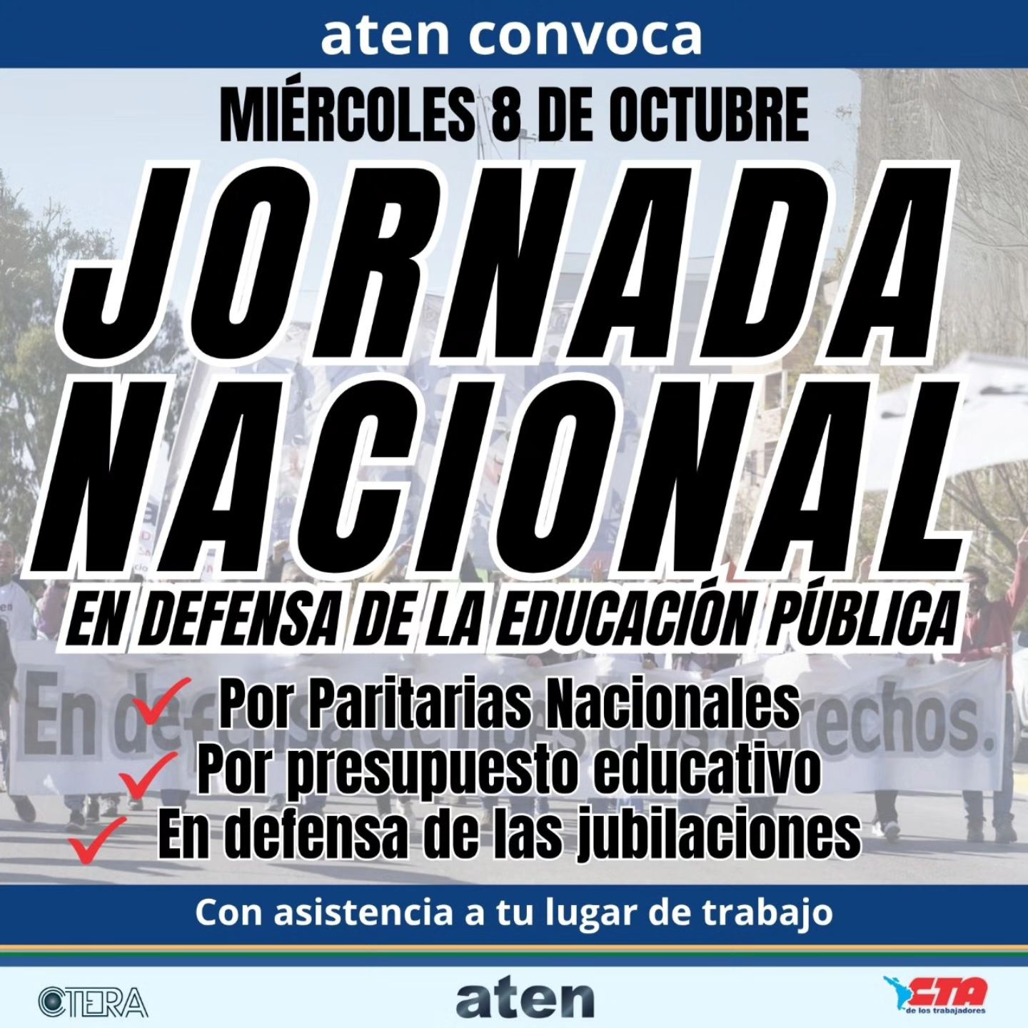 *Miércoles 8 de octubre: carpas educativas, clases públicas, radios abiertas, caravanas y actividades en plazas y espacios públicos de todo el país, junto a la comunidad educativa.*
