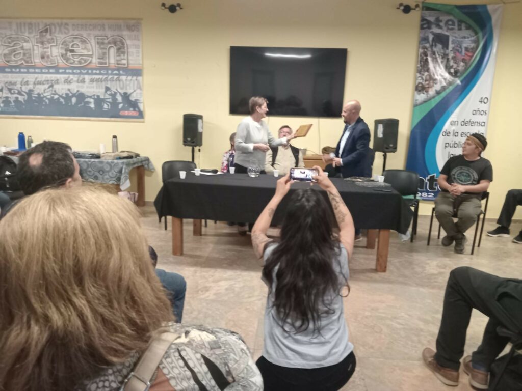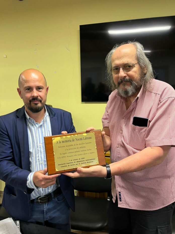 aten presente esta semana en el reconocimiento a Noemí Labrune por la Asociación Argentina de Abogados Ambientalistas. Emotivo evento con la presencia de referentes de la Universidad, la Confederación Mapuce, Lucas Michaloud, representante de la AAAA y compañerxs de la APDH que, en palabras de su presidente Walter Perez, reconocieron el compromiso de Noemí Labrune con los derechos humanos y el ambiente junto a la necesidad de luchar ante la vulneración de los derechos a una vida digna y habitable que posibilite el buen vivir.