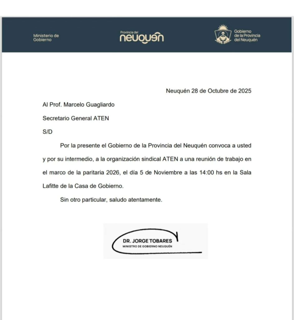 DestacadoGremial Convocatoria a Mesa 2025 29/10/2025 9 FacebookTwitterPinterestWhatsAppLinkedin Compañerxs, luego de solicitar al gobierno la convocatoria comprometida a la mesa, recibimos, en el día de hoy la notificación de que hemos sido convocadxs para el día 5 de noviembre a las 14hs