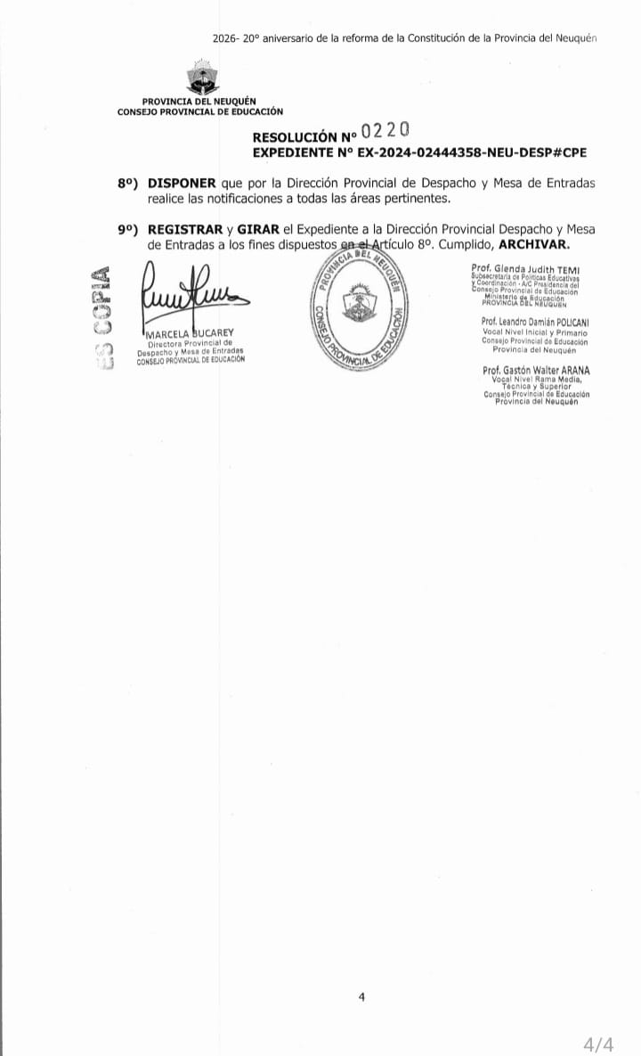 Esto habla muy mal de la gestión. Nada autoriza a creerse con la suma del Poder para aprobar una Resolución con apenas tres firmas en un organismo que tienen seis miembros y poner en su texto: «es política de este Consejo…». Esta aprobación, recurriendo al voto doble de uno de sus miembros cuyo cargo es Subsecretaria de Educación a/c de la Presidencia, deja a lo resuelto con poca legitimidad política y con una muy dudosa legalidad.