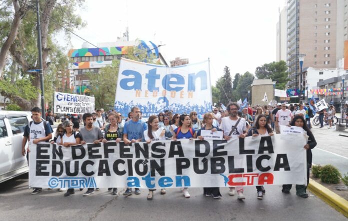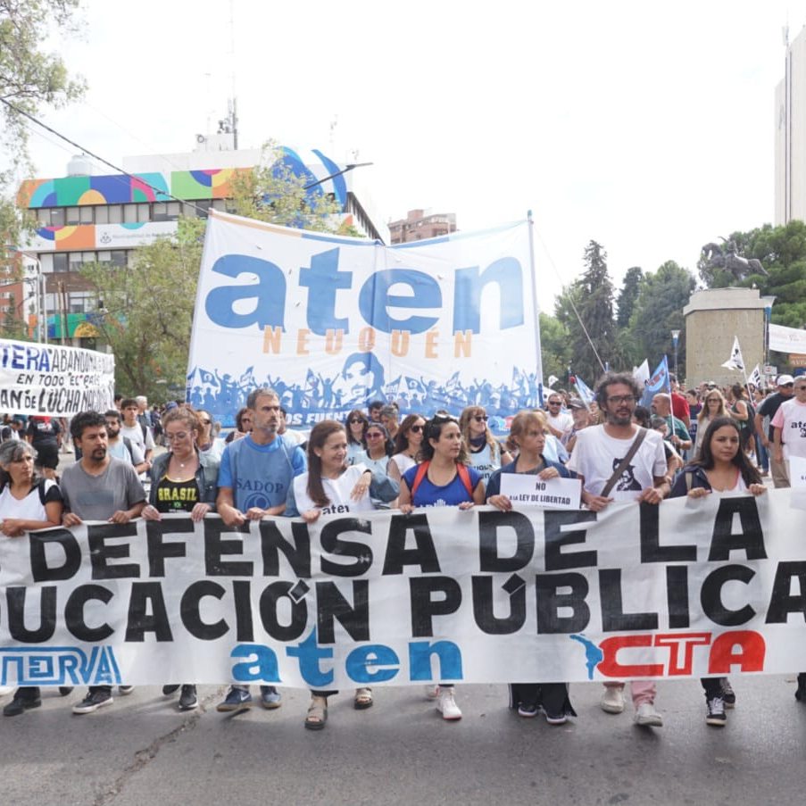 Desde el Monumento a San Martín de Neuquén capital, movilizamos hoy una gran columna de sindicatos en defensa de la educación pública y comunidad educativa, en el marco del Paro Nacional de CTERA exigiendo la convocatoria inmediata a Paritaria Nacional, Ley de Financiamiento, Restitución del FONID, en defensa de nuestras condiciones jubilatorias y contra el proyecto de “Libertad” Educativa impulsado por el gobierno nacional que atenta contra el Sistema Educativo y los derechos laborales de lxs trabajadorxs. De la misma participaron, junto con aten, ADUNC, SADOP y APUNC.