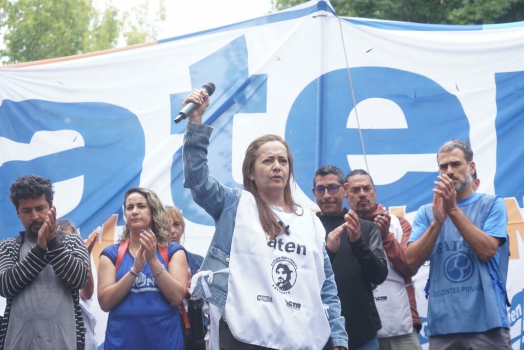 En el cierre de la movilización, frente a Casa de Gobierno, nuestra compañera Secretaria General de aten, Fany Mansilla remarcó que “esta lucha no la podemos dar solxs ni desde aten ni desde CTERA. Es con otras organizaciones, con otros sectores. Tenemos que tejer una alianza estratégica con las familias de nuestrxs estudiantes para generar el consenso necesario para frenar esta ley nefasta y regresiva».