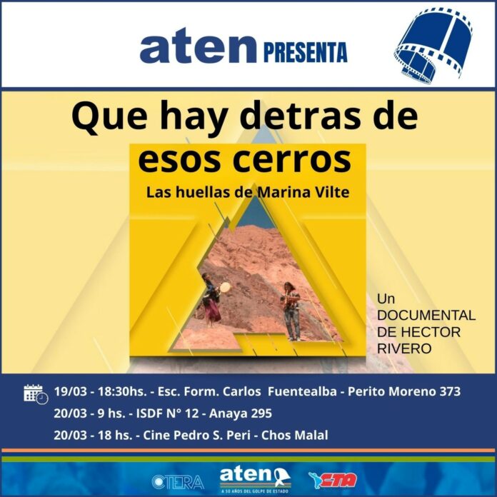 Aten te invita a participar de documental «Que hay detras de esos cerros. Las huellas de Marina Vilte».