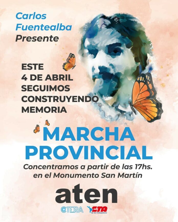 GeneralAfichesCarlos FuentealbaDestacado Carlos Fuentealba Presente!! 26/03/2026 4 FacebookTwitterPinterestWhatsAppLinkedin 4 de Abril, a 19 años del Asesinato de Carlos Fuentealba Seguimos Construyendo Memoria!! Concentramos a partir de las 17hs en el Monumento!