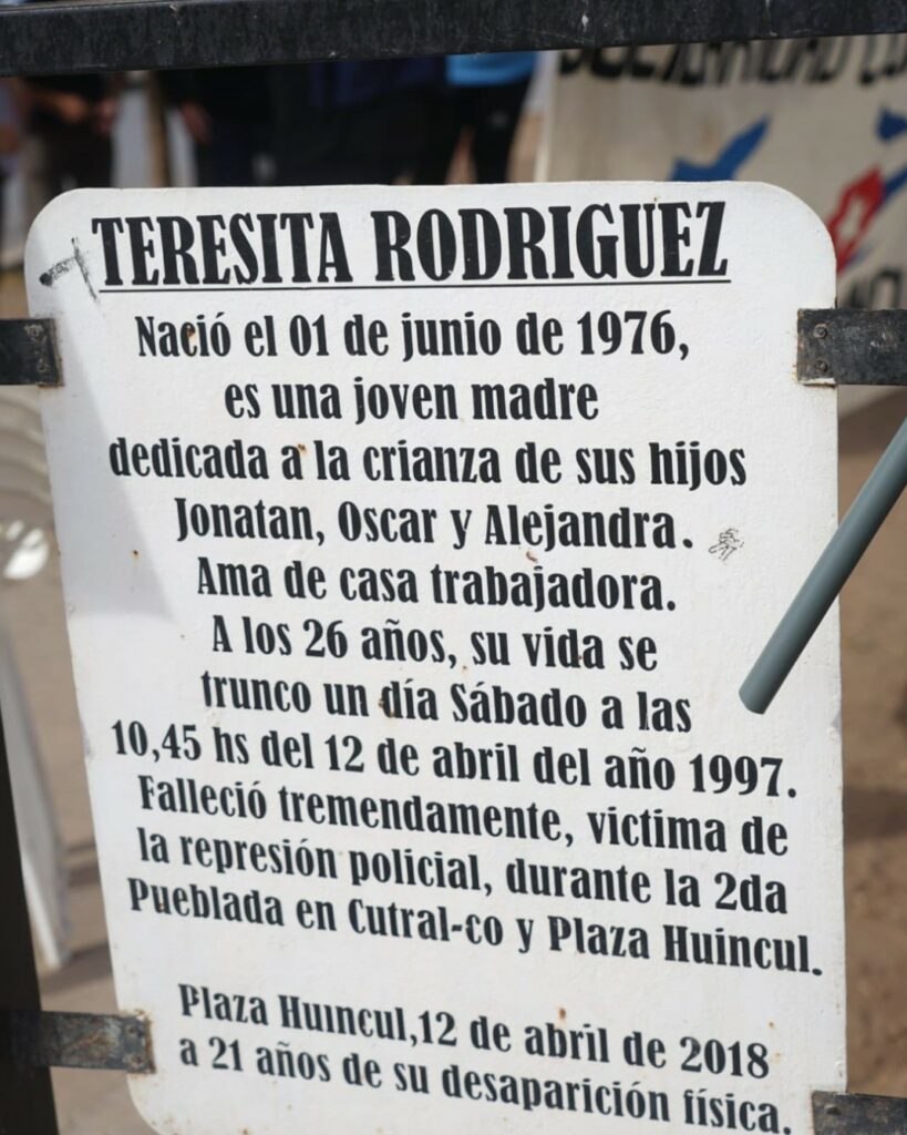 El 12 de abril de 1997 una bala de la policía provincial terminó con la vida de esta joven madre de tres hijxs pequeños.
