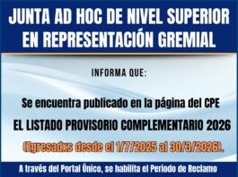 GeneralAfiches INFO DE ARTÍSTICA 13/04/2026 11 FacebookTwitterPinterestWhatsAppLinkedin Compañerxs compartimos información de la Junta Ad Hoc de Artística en representación gremial. Para acceder al listado ingresa al siguiente link: Junta Ad Hoc Artística <–