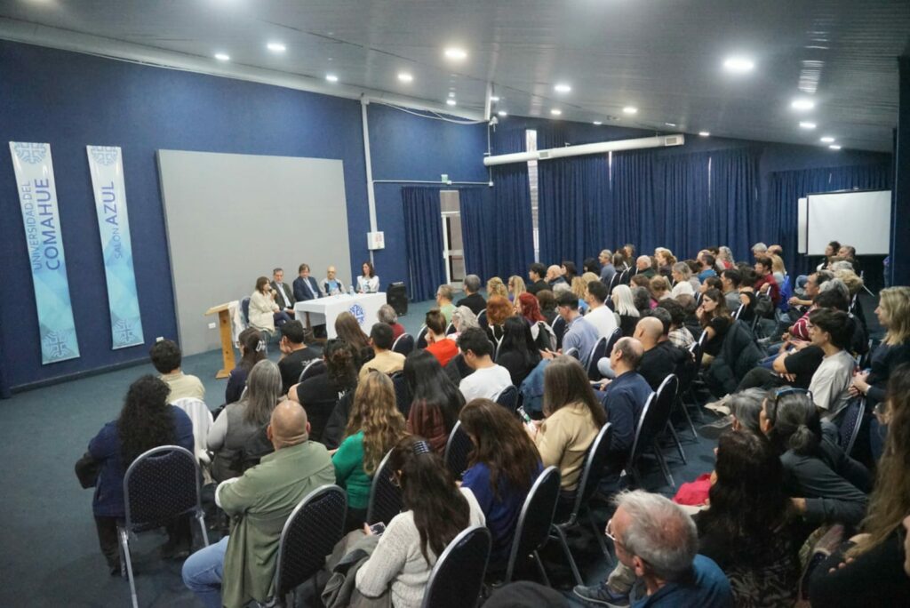 Se llevó a cabo en el Salón Azul de la Biblioteca de la Universidad Nacional del Comahue de Neuquén el conversatorio organizado por la institución educativa y aten a través de la Escuela de Formación Carlos Fuentealba: “Ponerle nombre a la ausencia: el proceso de identificación de personas desaparecidas en el centro clandestino La Perla, Córdoba”.